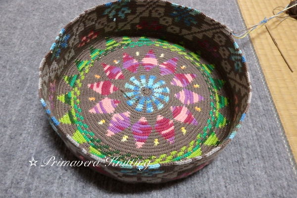 底もきれいにしようと思って模様を適当に編んでみました。