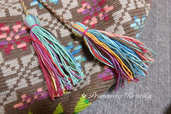 紐は組紐で上下横横と組んで完成。フリンジも付けました。